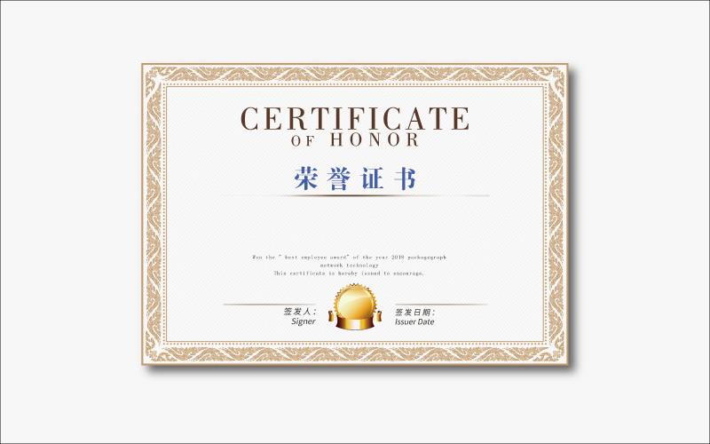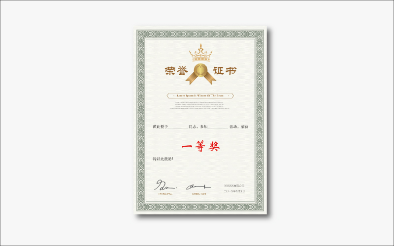 獲獎證書